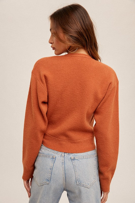This wrap sweater screams fall. The color and side tie bow design make it really unique and perfect for cooler weather.