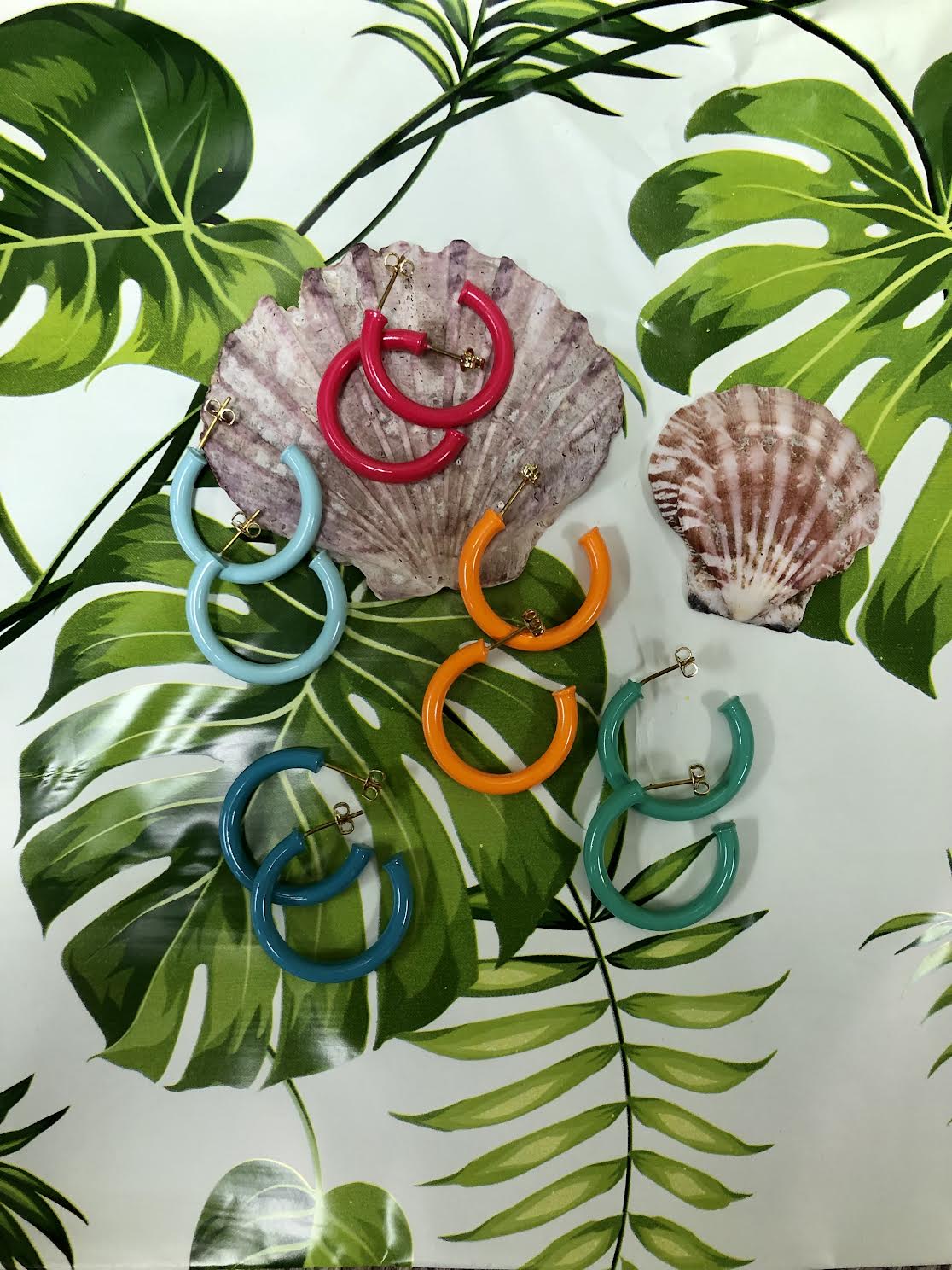 The cutest pop of color hoop you need for just about any summer outfit. These 30MM hoops come in five colors!