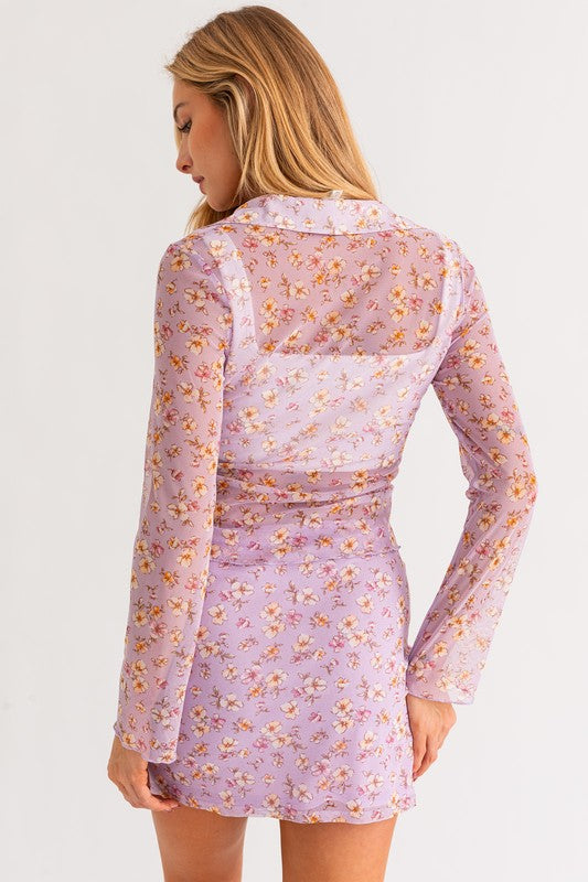 This adorable sheer top is the perfect spring arrival! The cinched button front is super flattering and pairs perfectly with the matching skirt or a cute pair of denim!