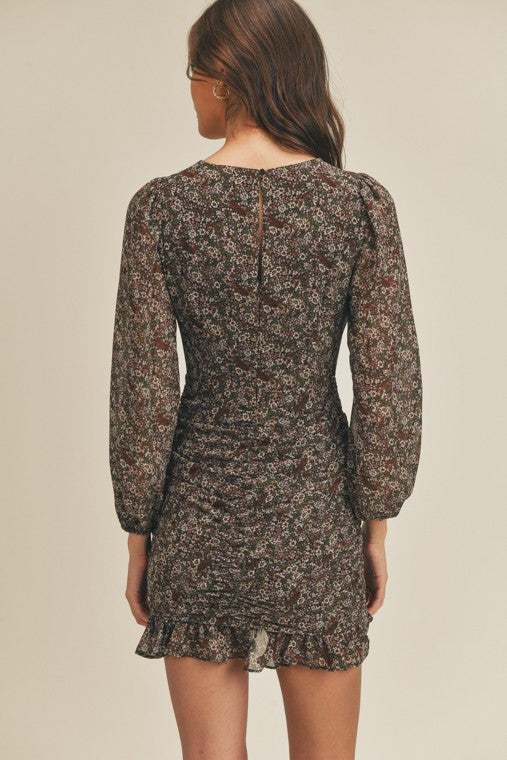 Winter florals! Need we say more? The long slight bubble sleeves and ruffle bottom make this dress one of a kind and just what you need to wear to that winter event. Super cool with tights and boots all season long.