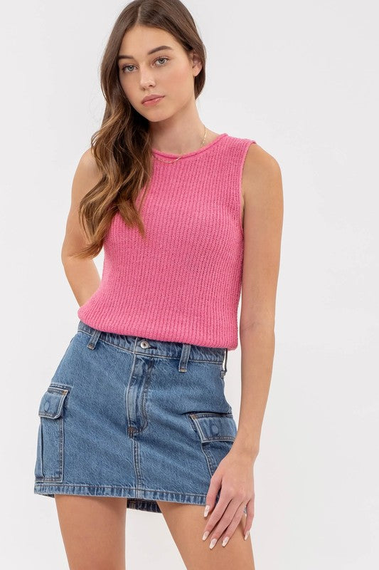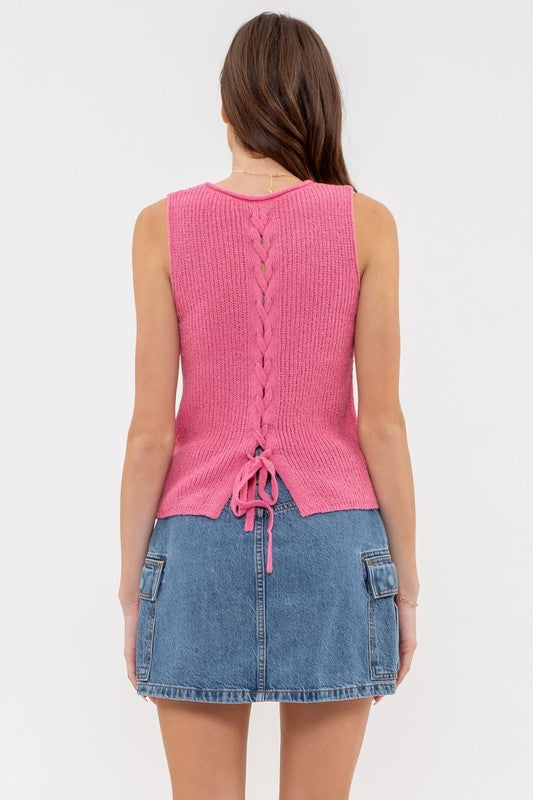 Okay we seriously are freaking out over this hot pink crocheted tank! Complete with lace up tie back detailing!