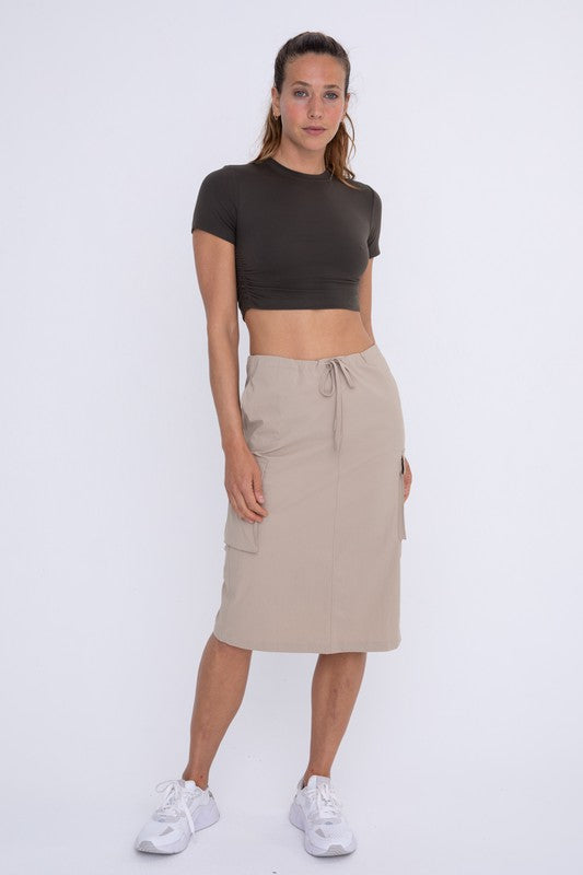 We love this little casual cargo skirt to pair with just about any graphic tee or top! Super lightweight and stretch material for a breezy and comfy on trend look all summer long.