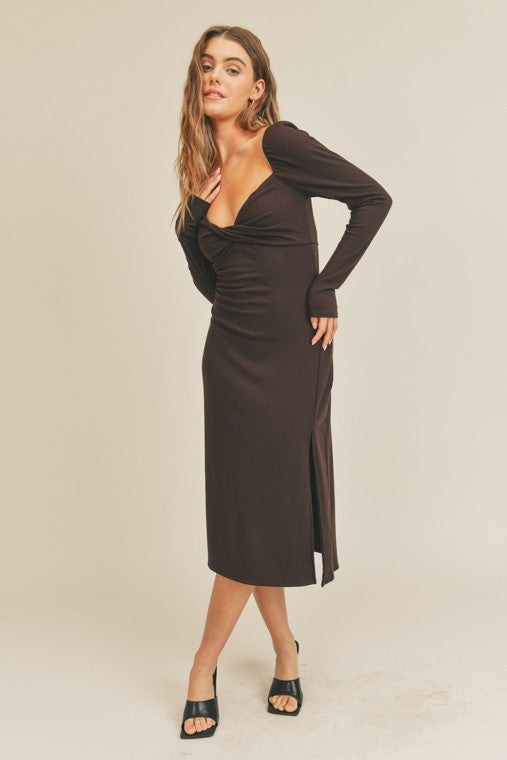 Pair a winter brown with a body con midi and you've found yourself the perfect trendy classic mix! We love this dress with booties, heels, sneakers...you name it!